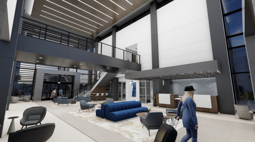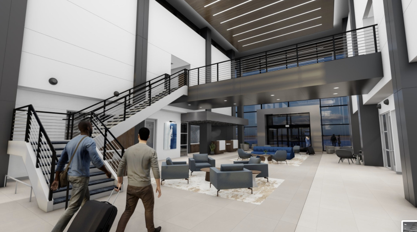 This project includes 331 acres of development at the airport including airside facilities with a new jet fixed based operation building with 14,400 square feet of luxurious lounge, office, and meeting space, plus 74,000 square feet of available hangar space.